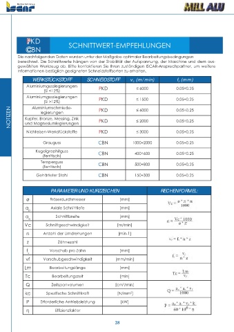 berechnet. Die Schnittwerte hängen von der Stabilität der Aufspannung, der Maschine und dem aus-