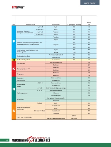 ISO Werkstückstoff Eigenschaft Zugfestigkeit [N/mm ] HB