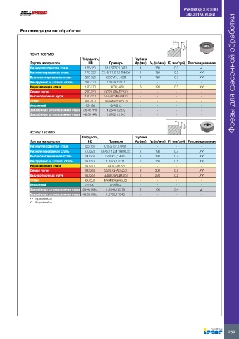 Низколегированная сталь    170-220  CK45,1.1231,16MnCr5  4    180       0.3         33                Фрезы для фасонной обработки
