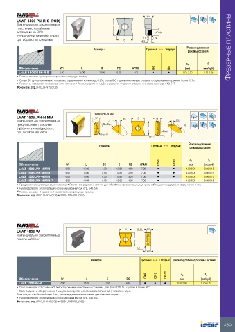 • Пластины поставляются с запасными винтами • Рекомендации по глубине резания, скорости резания и сплавам см. стр. 542-547