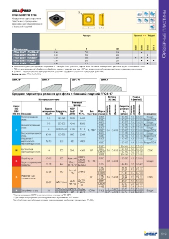 Средние параметры резания для фрез с большой подачей FFQ4-17