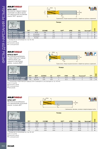 резьбы, профиль BSPT Применение: Общее машиностроение и обработка трубных соединений