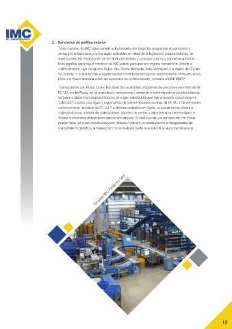 Todo miembro de IMC debe cumplir estrictamente con todos los programas de sanciones y