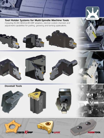 Multi-Spindle Turning Machines Tool Holder Systems for Multi-Spindle Machine Tools Featuring ISCAR’s MODULAR-GRIP adapters, internal coolant channels and adjustment capabilities for parting, grooving and turning applications. Dovetail Tools