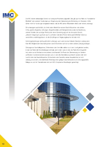 Kein IMC-Mitglied oder Geschäftspartner oder Drittvertreter darf sich an einer solchen Zahlung beteiligen.