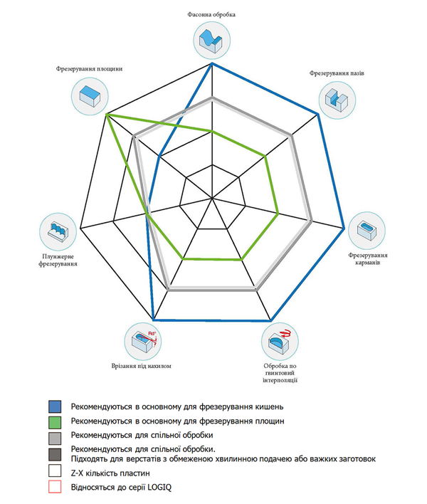 Вибираючи фрезу для високошвидкісного фрезерування, необхідно враховувати ряд факторів. На першому етапі в цьому допомагають спеціально розроблені інженерами ISCAR таблиці та діаграми (рис. 4, рис. 5).
