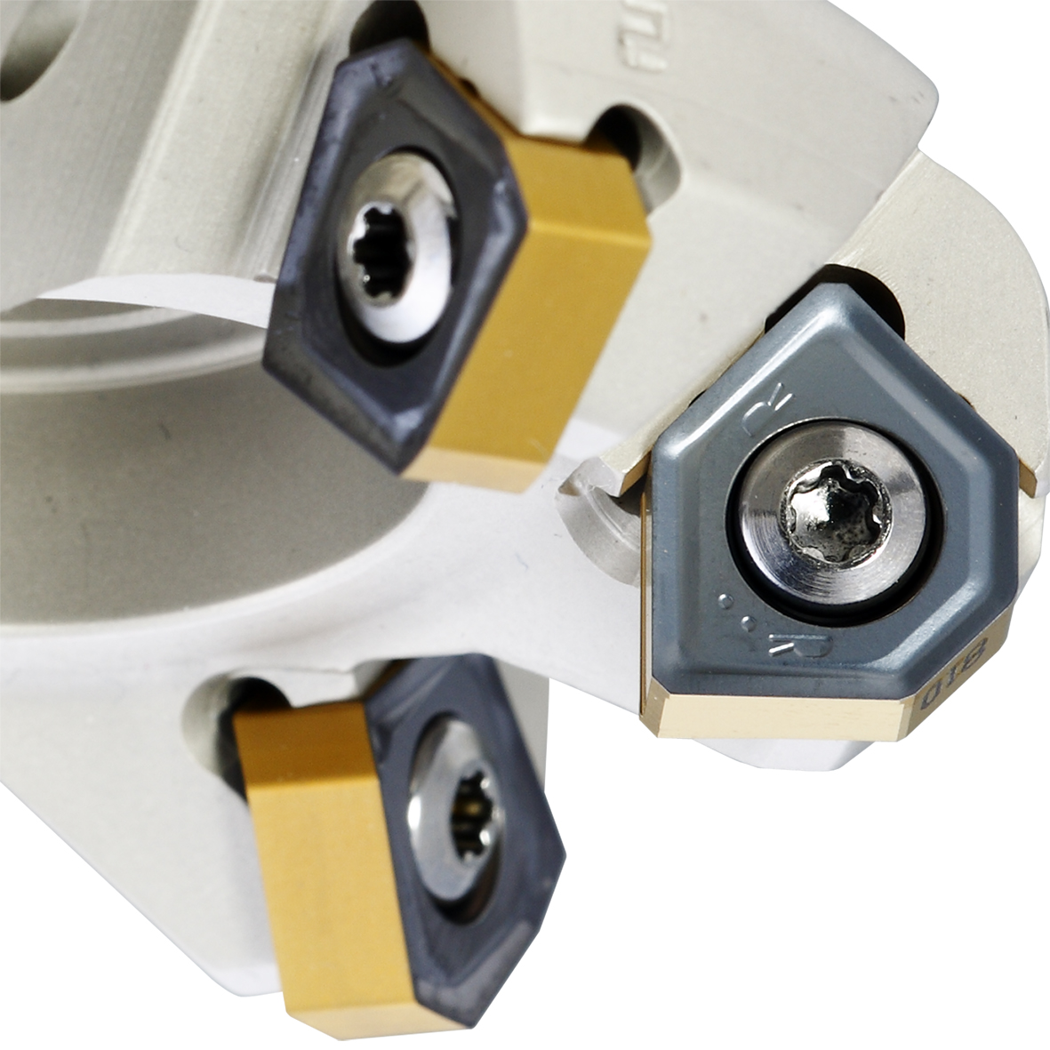 Fig. 3 – A TANGFIN indexable milling cutter utilizes the principle of graduate insert displacement.